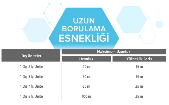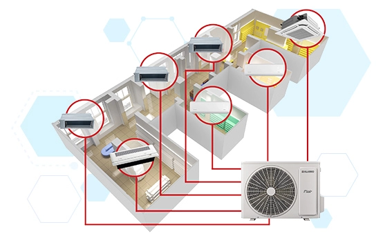 Yüksek verimli dış ünite ile işletme maliyetleri, diğer multi split sistemlere kıyasla önemli ölçüde azalır.